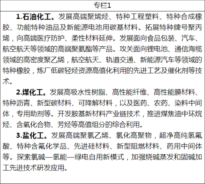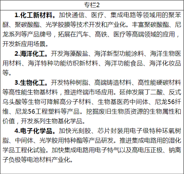 為發(fā)揮山東化工產(chǎn)業(yè)基礎(chǔ)優(yōu)勢,推動化工產(chǎn)業(yè)向精細(xì)化學(xué)品和化工新材料方向發(fā)展。《方案》提出了延伸一批化工產(chǎn)業(yè)鏈條、突破一批化工“卡脖子”技術(shù)、提升一批終端產(chǎn)品品質(zhì)三大發(fā)展方向,列出了12個細(xì)分領(lǐng)域的具體發(fā)展方向。