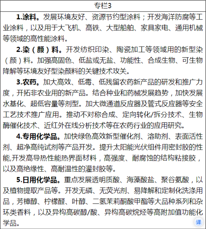 ![]() 突破一批化工“卡脖子”技術(shù)方面,《方案》提出,緊跟化工新材料、海洋化工、生物化工、電子化學(xué)品等新興化工領(lǐng)域的發(fā)展趨勢,聚焦國家重大戰(zhàn)略、行業(yè)發(fā)展和民生領(lǐng)域等需求,引導(dǎo)精細(xì)化工企業(yè)與下游應(yīng)用企業(yè)結(jié)對攻關(guān),超前布局前沿技術(shù),進(jìn)一步積蓄競爭優(yōu)勢。