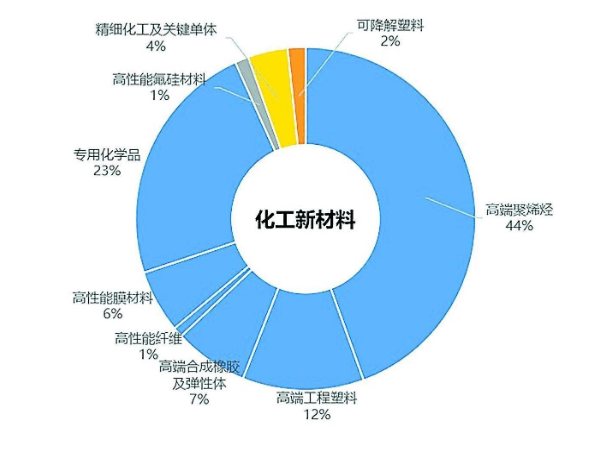 首先,《方案》對傳統(tǒng)產(chǎn)業(yè)鏈包含石油化工、煤化工、鹽礦化工及生物化工等領(lǐng)域的延鏈產(chǎn)品進(jìn)行了描述。石油化工產(chǎn)業(yè)鏈要重點做好烯烴、芳烴的利用,發(fā)展高端聚烯烴、工程塑料、聚氨酯、特種合成橡膠、高性能纖維、功能膜、專用化學(xué)品、高性能膠黏劑等八大類產(chǎn)品。這些產(chǎn)品絕大多數(shù)屬于化工新材料范疇(高端聚氨酯可劃分至化工新材料的彈性體和專用化學(xué)品,高性能膠黏劑可劃分至專用化學(xué)品)。此外,煤化工里涉及的可降解塑料、生物化工里涉及的生物基單體、鹽礦化工里涉及的氟硅樹脂和氟硅橡膠等分別屬于化工新材料里的可降解材料、精細(xì)化工及其單體,以及高性能氟硅材料領(lǐng)域。因此,《方案》中提到的傳統(tǒng)產(chǎn)業(yè)鏈向高端化延伸的核心是推動化工新材料的發(fā)展。石油化工行業(yè)的產(chǎn)業(yè)鏈延伸是化工行業(yè)轉(zhuǎn)型升級的重中之重,涉及的化工新材料市場份額占化工新材料總需求(按重量統(tǒng)計)的90%以上。生物化工里的生物基產(chǎn)品是對現(xiàn)有化石基材料的有效補充,是綠色低碳的重要發(fā)展方向。