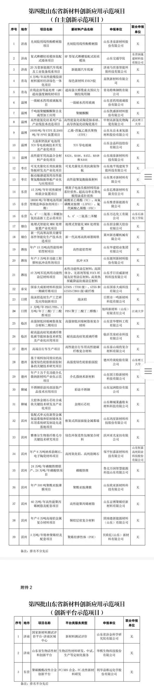 近日,從山東省工信廳傳出消息,經企業申報、各市推薦、專家評審、公示等程序,確定山東圣泉新材料股份有限公司光刻膠用線性酚醛樹脂等39個項目為第四批山東省新材料創新應用示范項目(自主創新示范項目),山東省冶金科學研究院有限公司國家新材料測試評價平臺-濟南區域中心等3個項目為第四批山東省新材料創新應用示范項目(創新平臺示范項目)。